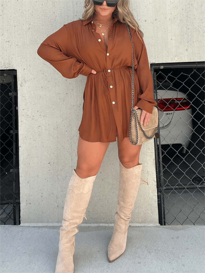 SOLID SATIN COLLAR NECK ROMPER DRESS WITH TIE . CAN BE WORN OPEN AS A LAYERING PIECE OR CLOSED AS A DRESS! SUPER LIGHTWEIGHT FABRIC!
